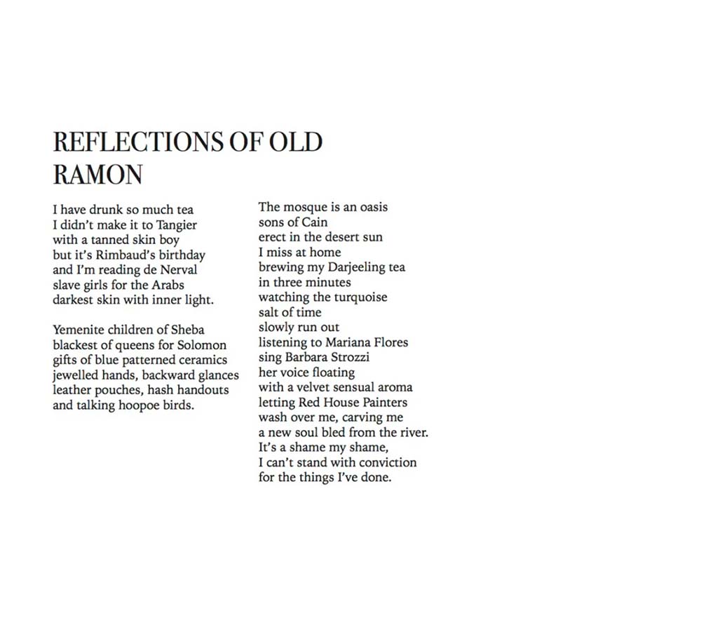 An excerpt from the introductory page of Edmund English's poetry and photo book concerning his recent trip to Morocco:
