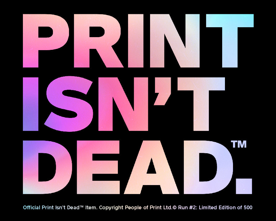 Unveiling the second run of our cult-favourite emblem, the Print Isn't Dead™ sticker is a statement piece designed for bookworms, artists, and advocates of the print & design. The first run sold out in record time, so this time we have included the details of the second run as part of the sticker design.