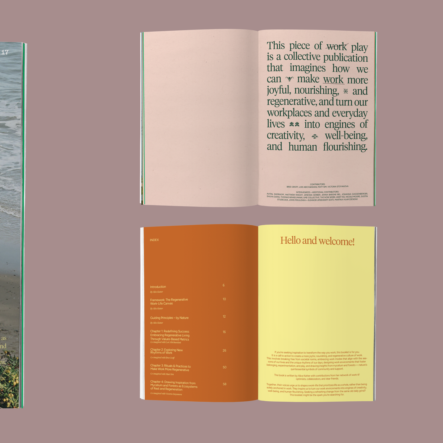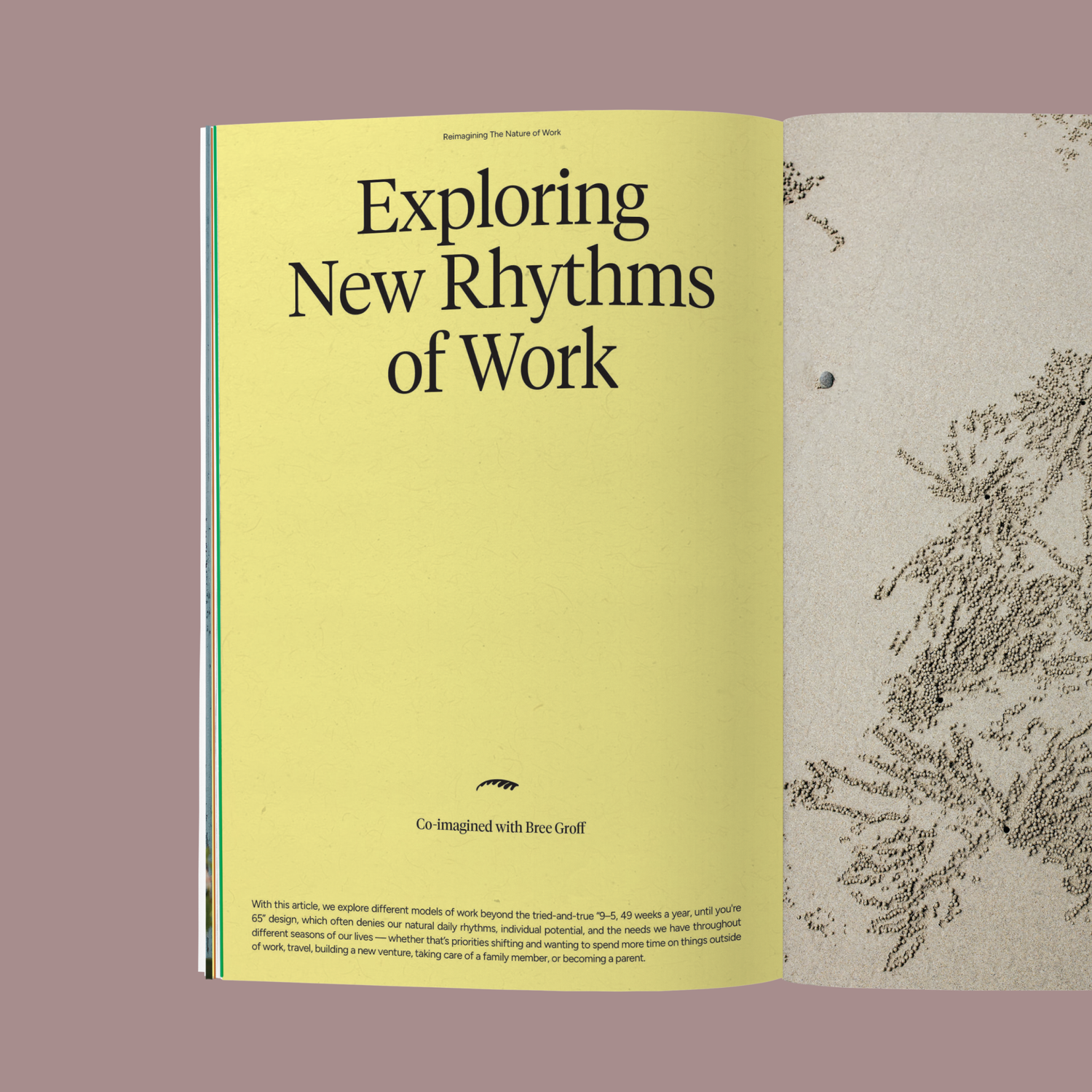 In a world where the conventional "9-5 until you retire" paradigm often prioritises productivity over human connection, this magazine serves as a beacon of inspiration for those seeking a more balanced and fulfilling work experience. Recognising the detrimental impact of burnout and disconnection in today's workforce, it advocates for a collective reimagining of work that prioritises creative well-being and human flourishing.